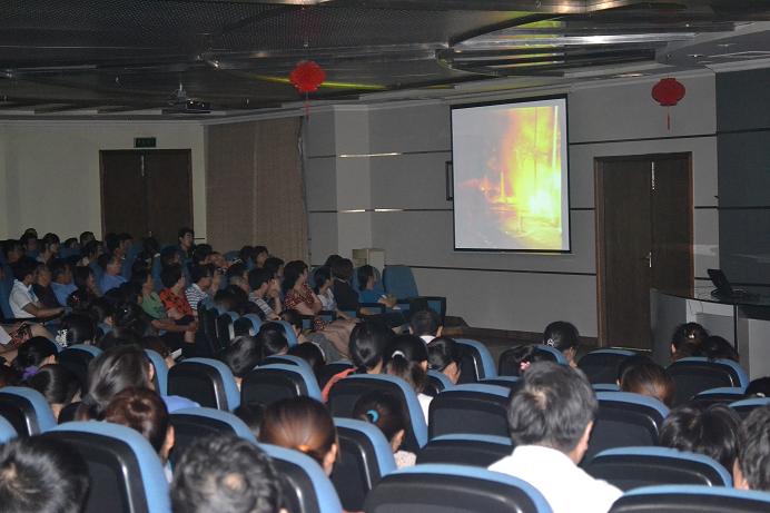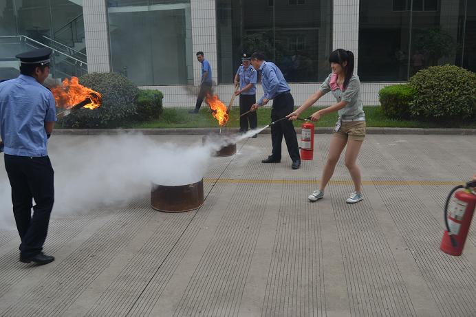 活动前,为提高全体员工对消防技能的重视性,公司组织安排全体员工观看了消防知识警示片和模拟求生测试活动。随后,安保部门负责人讲解了火灾现场应注意的各项安全问题,并就灭火器的基本原理、操作方法及注意事项作了详细介绍,同时公司保安人员就灭火器的使用进行了现场演练。