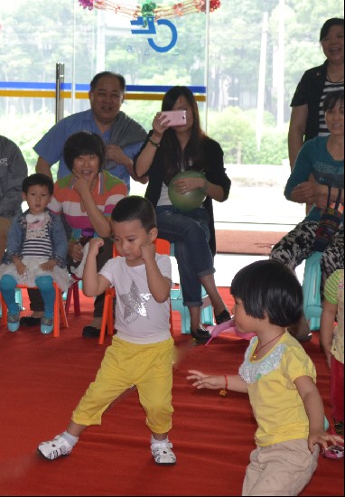 活动现场,一片欢声笑语,充满了节日气氛,小朋友们以独唱、合唱、古筝表演、舞蹈、环保时装秀等不同形式表达了对节日的庆祝。尤其是许奕琳小朋友带来的古筝表演,别看她小小年纪,弹起古筝可是有板有眼,可爱的表情,认真的模样让在场的各位家长不禁啧啧称赞。在表演中还穿插了小朋友与家长的互动亲子游戏、益智游戏,如亲子心连心、拷贝不走样、给妈妈穿衣服、认识五官等。这些游戏活动不仅增强了孩子与家长之间的交流与合作,同时也增进了家庭感情。