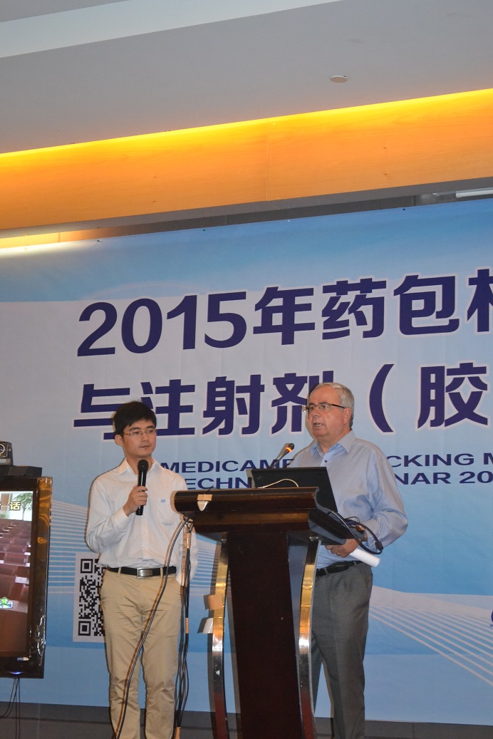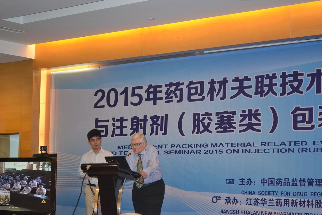 我公司还特别安排了英国365集团官网技术经理朱银华博士就注射剂首选覆膜胶塞的技术要求及覆膜胶塞在应用中的注意事项做专题介绍,专业的数据分析,敏捷的思路让朱博士的讲解得到了与会代表的一致认可。为保证技术研讨会效果,公司还请来了五十多年来在欧洲从事注射剂内包材瓶塞技术研究、DMF技术审评的奥托博士、贾米尔先生与大家交流互动,奥托、贾米尔先生就胶塞成分对药品的影响及如何满足欧洲药包材DMF文件的编制及标准,国际市场对胶塞的选用、应用与国内的区别做现场互动交流。交流中,专家代表们热情提问,通过交流对欧美的DMF备案有了更深入的认识。