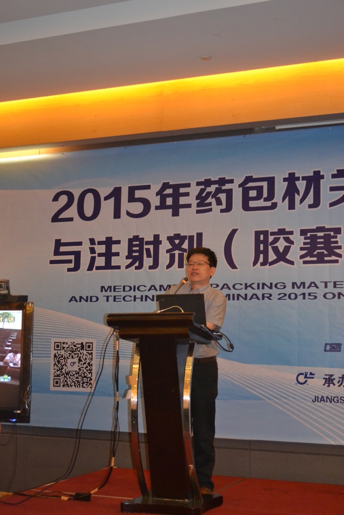 6月23日,由中国药品监督管理研究会主办、我公司承办的2015药包材关联技术审评及DMF备案与注射剂(胶塞类)包装材料质量研讨会在常州维景国际大酒店召开。中国药品监督管理研究会、中检院包装材料与药用辅料检定所、国家食品药品监督管理局药品包装材料科研检验中心、浙江省食品药品检验研究院包装材料检验所、无锡市食品药品监督管理局专家领导及来自全国各地的150余名制药界代表参加了此次会议。