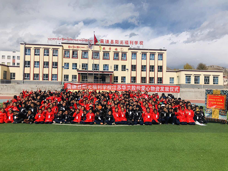 在青海玉树囊谦县,有一所阳光福利学校。这个学校的学生大多是当地的孤儿、单亲家庭和特困生。公司华一敏总经理在去年十月份一次偶然的机会中得知学校的学生因买不起冬装在为即将来临的寒冬发愁,他第一时间就以英国365集团官网公司名义订制了290件羽绒服及290双保暖鞋给孩子们送去,同时也号召公司所有员工义捐,向孩子们献出一份爱心。