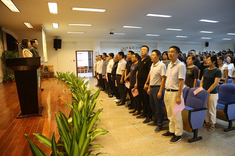 接着由李忠校长带领全体教师宣誓:忠诚党的教育事业,履行教师神圣职责,争做四有好老师,立志为江阴教育发展奉献力量。