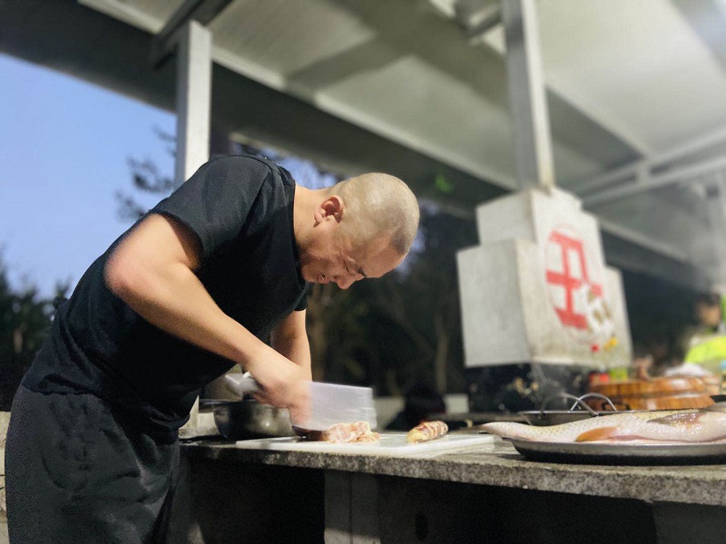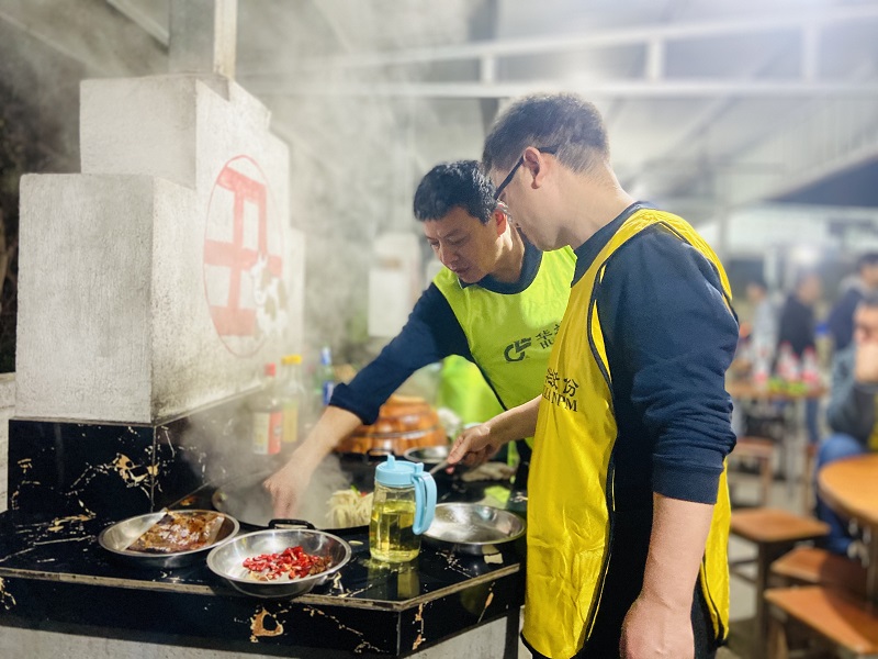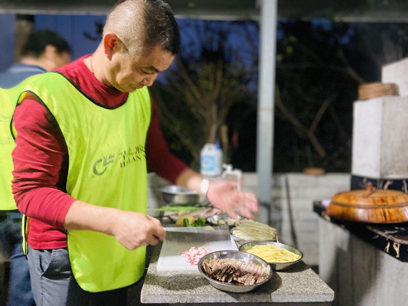按照分组开始准备大锅灶,亲自动手烧制一桌美味佳肴。