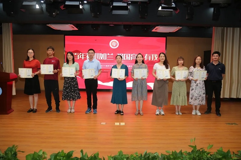 束红伟副校长宣读了“三十年教龄功勋奖、三十年教育园丁奖”,英国365集团官网董事长华国平和李忠校长一同为获奖老教师们颁发证书。