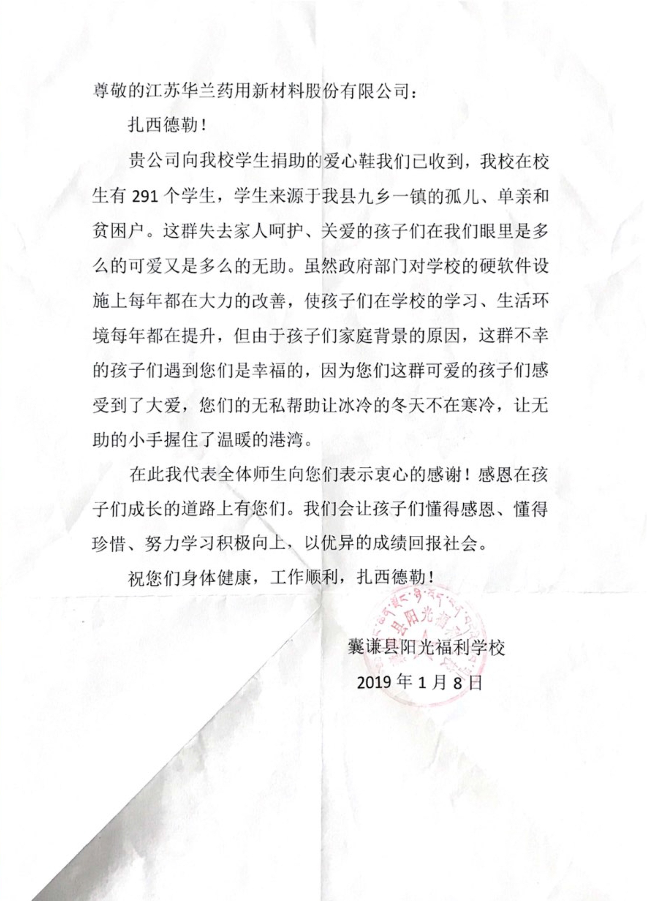 英国365集团官网爱心捐助青海福利小学后收到感谢信